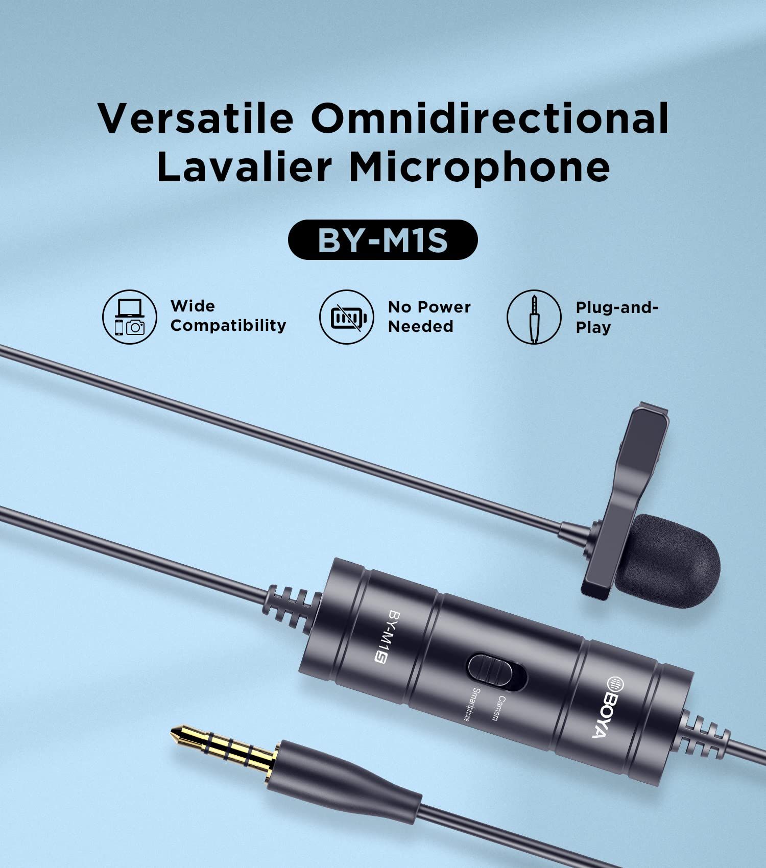 ◾ BOYA BY-M1S là một micrô lavalier đa hướng được nâng cấp, lý tưởng cho vlog, thuyết trình, podcasting, phát trực tiếp và hơn thế nữa. ◾ BY-M1S được thiết kế với một viên nang đa hướng được cập nhật bên trong và thu âm thanh chất lượng phát sóng từ phạm vi 360 độ và truyền nó đến thiết bị ghi âm của bạn qua 6m (20 '' ) cáp được che chắn. Với độ nhạy được cải thiện, tín hiệu thành tiếng ồn và đáp ứng tần số phẳng, BY-M1S cho phép bạn ghi lại mọi chi tiết âm thanh cuối cùng với khả năng tự nhiễu thấp hơn. ◾ Với đầu nối đầu ra TRRS 4 cực 3,5 mm, bạn có thể kết nối BY-M1 với máy ảnh hoặc máy quay của mình ở chế độ “Camera” và cũng có thể kết nối nó với điện thoại thông minh hoặc máy tính bảng có cổng 3.5mm khi chuyển sang chế độ “OFF/Smartphone”.