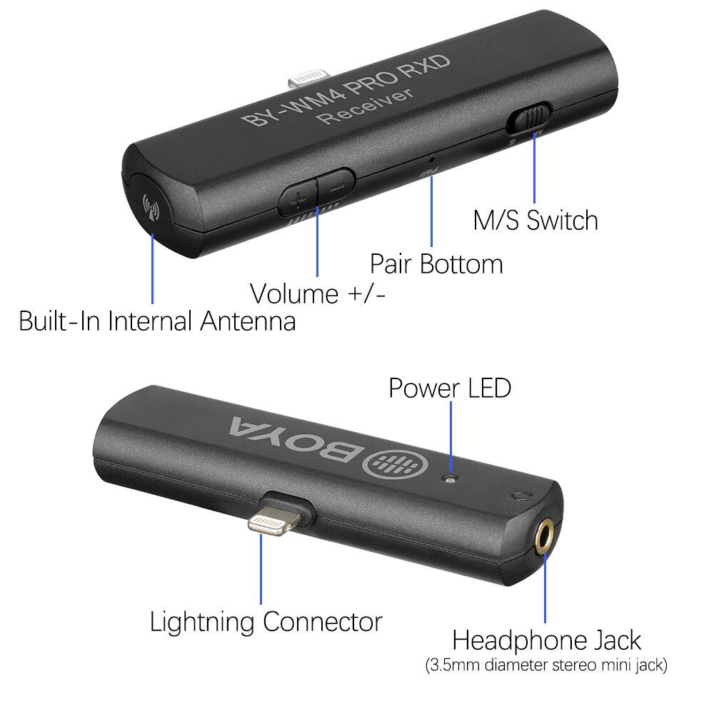BY-WM4 PRO-K3 là microphone không dây 2.4 GHz thế hệ mới được thiết kế riêng cho các thiết bị iOS trang bị cổng Lightning. Bộ mic bao gồm một máy phát (TX4 Pro) và một máy thu tối giản với cổng Lightning (BY-WM4 PRO RXD), đi kèm một microphone đa hướng cài áo.