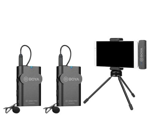 Hệ thống bao gồm hai bộ phát trong thân máy (TX4 Pro) và một bộ thu nhỏ với đầu nối Type-c (BY-WM4 PRO RXU), hai micrô lavalier đa hướng.
