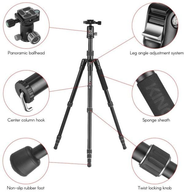 Chân Máy Ảnh G22 + G00 Portable Travel Camera Tripod Monopod with 360 Degree Ball Head – Chính Hãng KINGJOY (Aluminum)