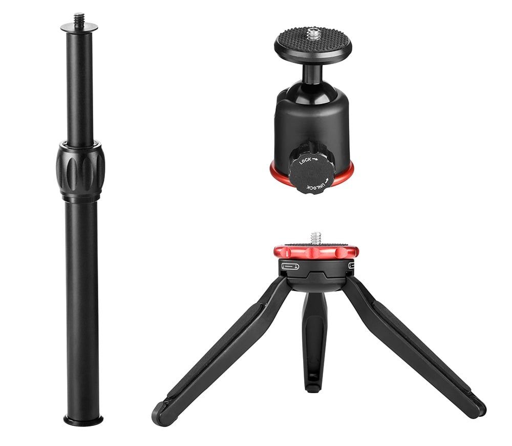 Chân tripod kiêm gậy tự sướng ULANZI SEVENOAK SK-T1 – Tương thích với: GoPro 6/5/4/3, các dòng smartphone và các máy ảnh có trọng lượng < 5kg – Thiết kế hoàn toàn từ hợp kim Aluminum, cứng cáp, bền bỉ. – Chân đế dạng kiềng 3 chân, có lót cao su chống trơn trượt. – Sơn khử tĩnh điện chất lượng cao, chống xước. – Trọng lượng cực nhẹ, dễ dàng mang theo bên mình. – Thiết kế khớp quay dạng cầu, có khả năng quay 360* và tạo ra góc nghiêng tối đa 37* so với phương thẳng đứng. – Độ cao tùy biến, có thể tháo rời phần ống phụ để tăng giảm chiều cao tùy ý.