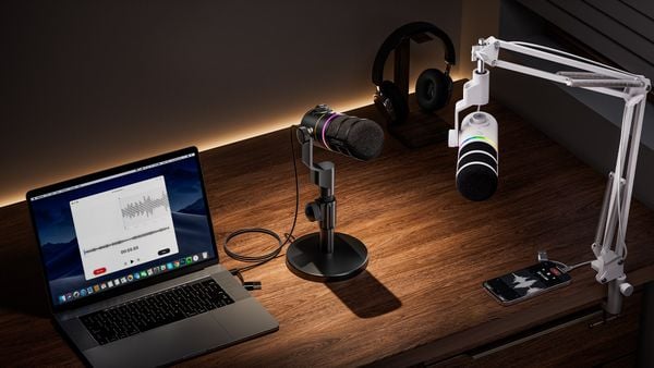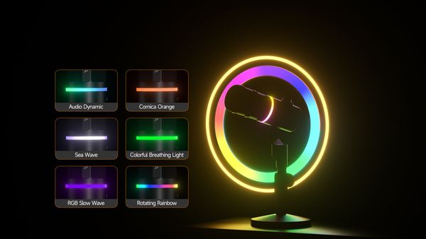 - Nhấn ngắn để điều chỉnh 6 hiệu ứng đèn RGB: Dynamic Audio, COMICA Orange, Sea Wave, Colorful Breathing Light, RGB Slow Wave và Rotating Rainbow. Đèn RGB sống động tạo không gian đầy hứng khởi, lý tưởng cho các hoạt động như gaming, livestream hay thu âm chuyên nghiệp.