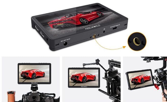 Được thiết kế linh động cho mọi tình huống - F5 Pro V4 chỉ 245g . Có một tấm pin F970 và một bộ cài đặt / nguồn ở mặt sau của màn hình, bộ cài đặt / bộ nguồn có thể cấp nguồn và lắp đặt thiết bị bên ngoài, như bộ phát không dây, đèn LED và những thứ khác được trang bị tấm pin Sony F970.
