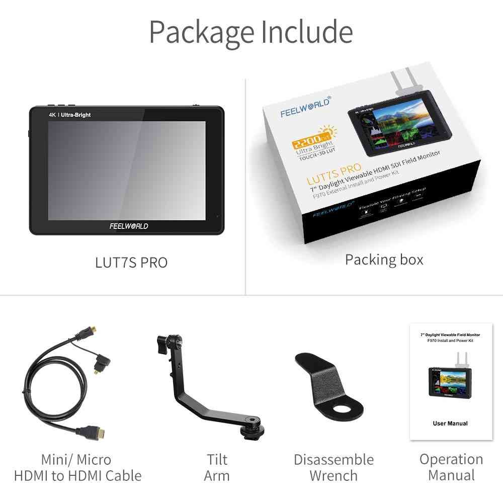 FEELWORLD LUT7S PRO cho phép giám sát hiện trường và phân tích hình ảnh rõ ràng và chính xác trong khi chụp vào ban ngày. Nó hiển thị ảnh tĩnh và nội dung giám sát của bạn với độ trung thực màu sắc vượt trội và độ phân giải tối đa 1920 x 1200 trên màn hình 7 inch. - Bảng điều khiển được làm bằng kính liên kết quang học với lớp phủ chống phản chiếu, cho phép giám sát hiện trường vào ban ngày một cách thoải mái. Nhưng điều thực sự làm nên sự khác biệt của nó là đèn nền điốt phát sáng (LED), tạo ra độ sáng 2200 nit và hiển thị tỷ lệ tương phản 1200:1 cùng Gam màu sRGB / Rec.709, mang lại độ rõ nét đặc biệt cho màn hình ngay cả trong điều kiện ánh sáng mạnh điều kiện. - Với màn hình hiển thị nội dung của bạn ở mức 323 pixel mỗi inch (PPI), bạn có thể tự tin chụp ảnh dưới ánh sáng ban ngày và tinh chỉnh nội dung của mình ngay tại chỗ. Góc nhìn rộng 160° giúp nhiều thành viên trong đoàn dễ dàng xem cùng lúc