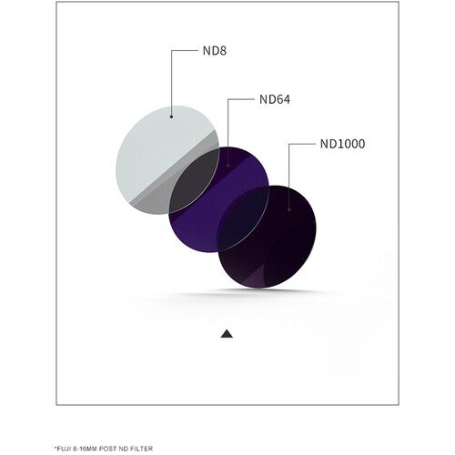 This Rear-Mount ND 3-Filter Set from Kase includes ND8, ND64, and ND1000 filters for the FUJIFILM XF 8-16mm f/2.8 R LM WR lens. The round filters install inside the lens mount of your FUJIFILM camera, and the 8-16mm lens then mounts over it. The filters are made of tempered optical glass and feature multiple layers of coating. Foam gaskets and installation instructions are included.