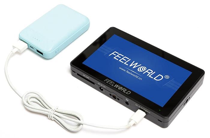 - Ngoài nguồn điện thông qua các tấm pin và đầu vào nguồn DC 12V, Monitor Feelworld F6 Plusx còn tích hợp đầu vào 5V Type-C, có thể được cấp nguồn bằng bộ sạc điện thoại di động hoặc pin dự phòng.