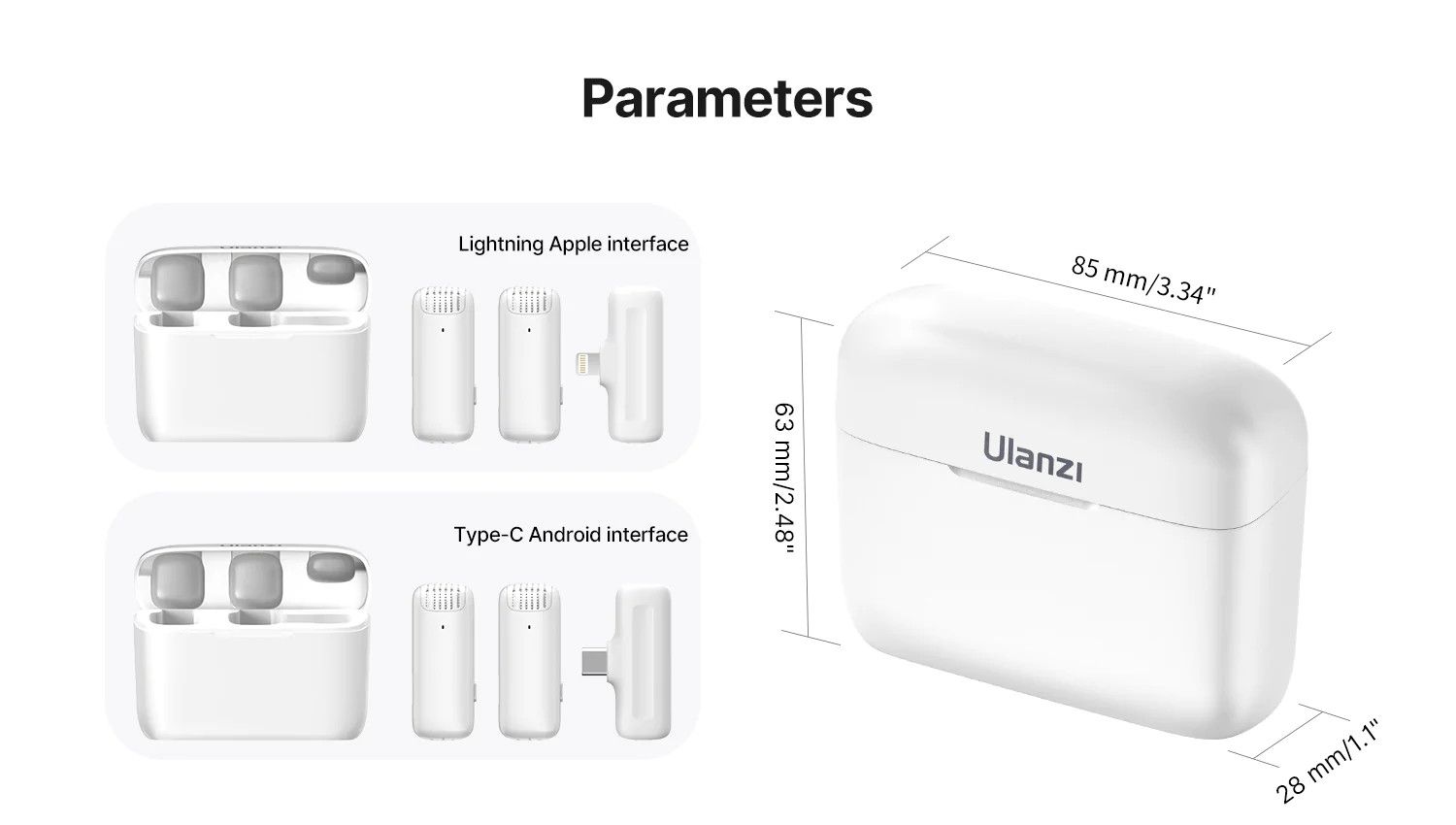 THÔNG SỐ KĨ THUẬT: ◾ Thương hiệu: Ulanzi ◾ Model: J12 ◾ Chất liệu: ABS ◾ Khoảng cách truyền: 20m/65ft ◾ Độ trễ âm thanh: <= 25ms ◾ Dung lượng pin của Máy phát: 80mAh ◾ Dung lượng pin của hộp sạc: 800mAh ◾ Chế độ kết nối: Tự động kết nối khi bạn gắn RX vào điện thoại