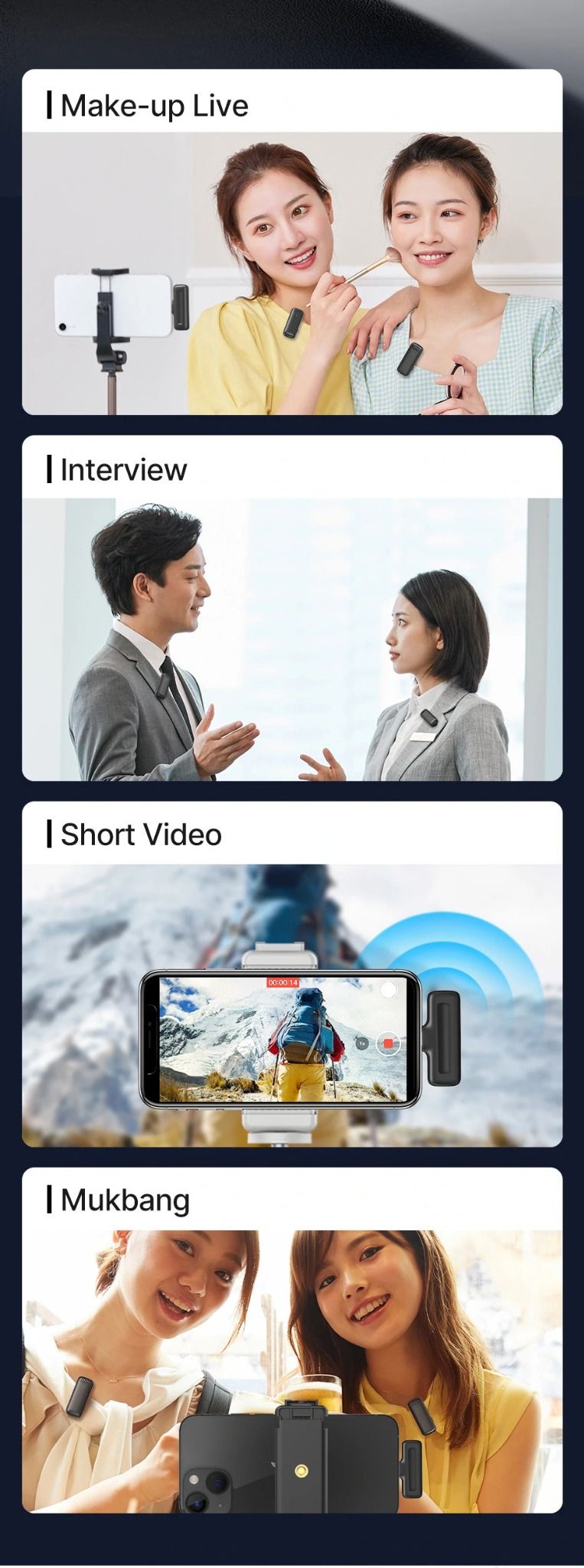 ◾【Hệ thống micrô không dây】 Bao gồm 1 đầu thu & 2 đầu phát, hỗ trợ ghi âm đồng thời micrô kép, plug-and-play, không cần APP, rất thích hợp cho vlog điện thoại, phát trực tiếp, phỏng vấn, trò chuyện trực tuyến, v.v.