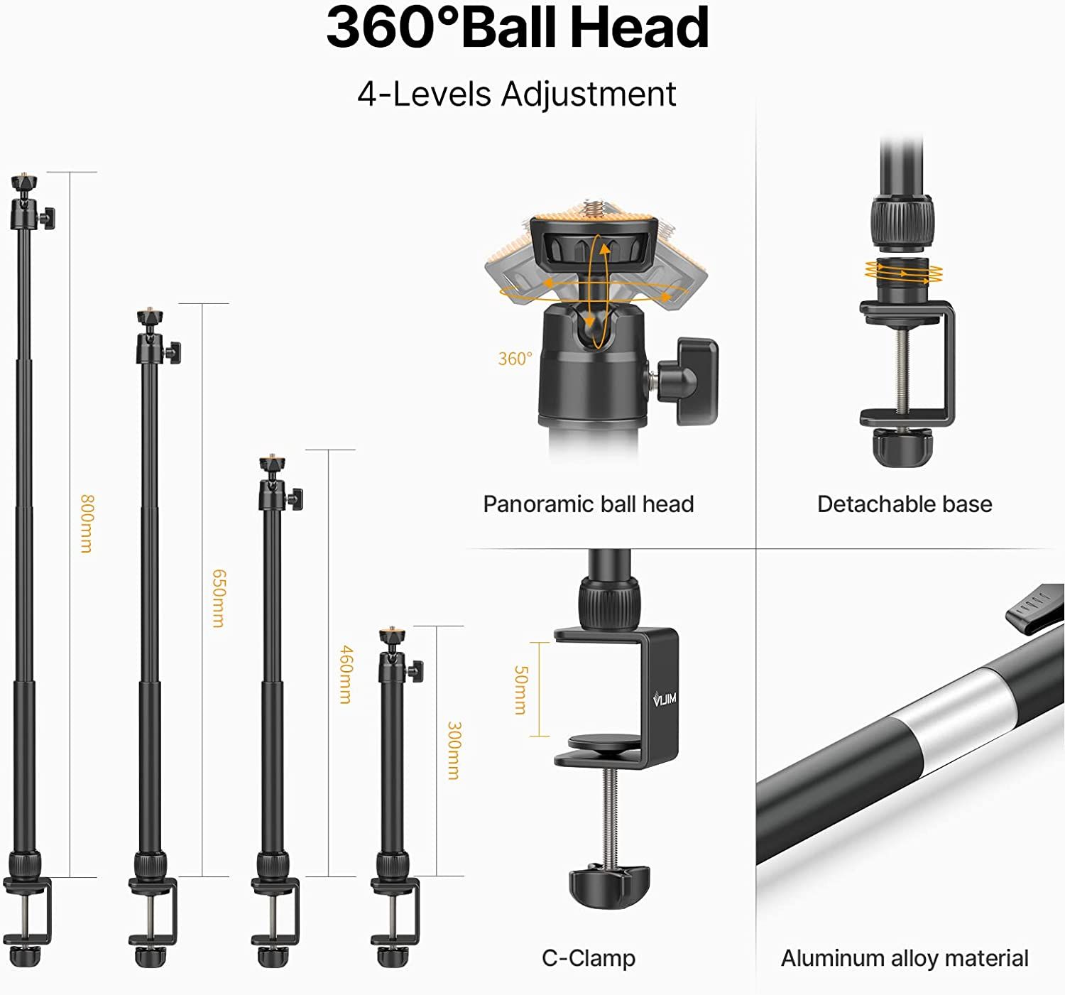 CHIỀU CAO CÓ THỂ ĐIỀU CHỈNH: Chân đế để bàn có 4 mức độ mở rộng, từ 11,8 inch đến 31,5 inch, cho bạn nhiều lựa chọn hơn; Đầu bi xoay 360 độ có khả năng lựa chọn góc độ lý tưởng mà bạn muốn